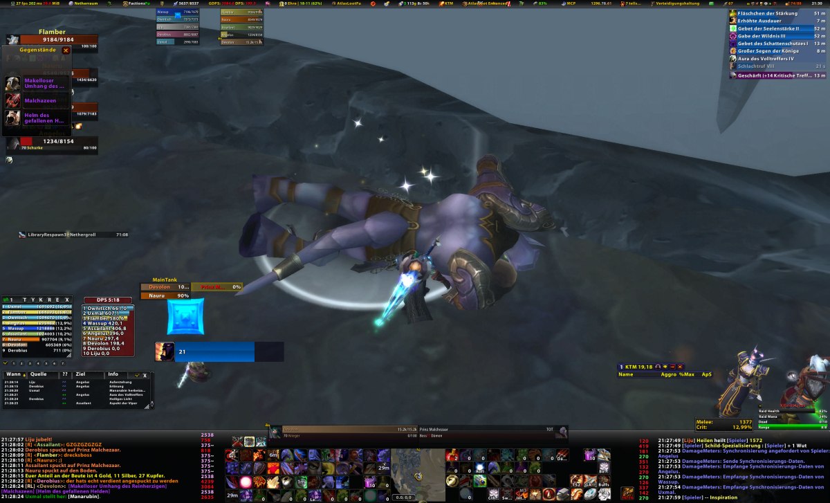 Am 3. Raidtag diese Woche konnten wir den Prinz nach MASSIG Infernal Pech zu Boden ringen. Danach ging es direkt zu Nethergroll, den wir auch schon auf 40% seiner HP bewundern durften .