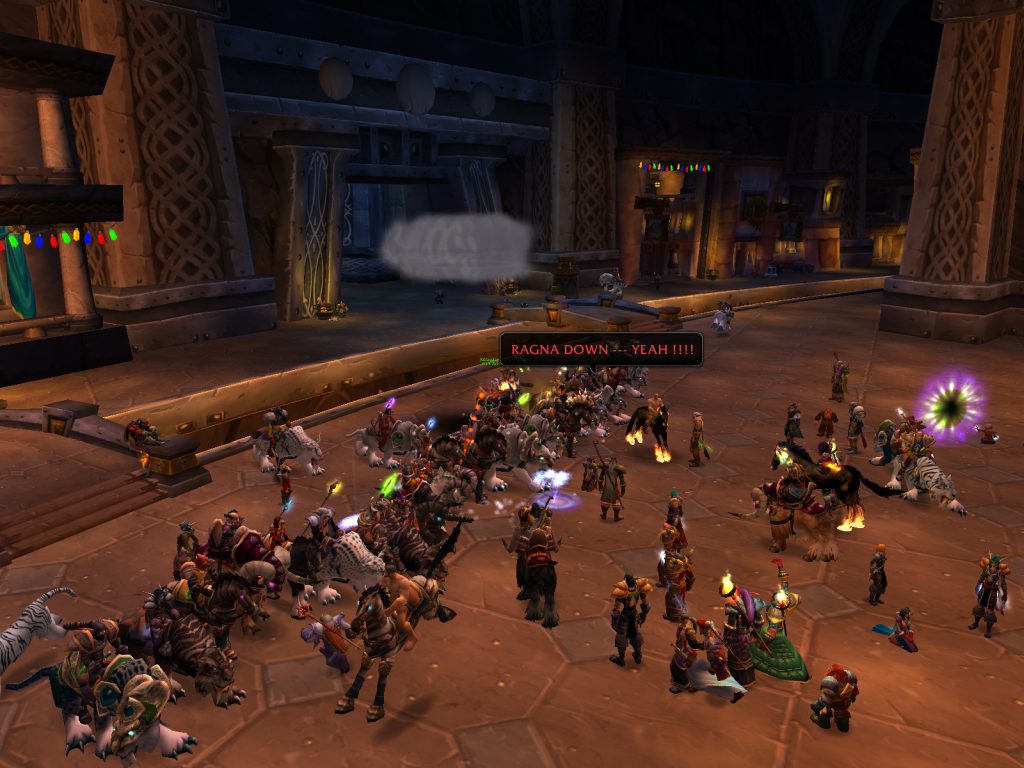 Nachdem wir in rasantem Tempo zu Domus vorstiessen, den wir ohne Probleme im 1. Try legten (mit ca 34 Mann^^), kamen wir zu Ragnaros. Der erste Try verlief schon super, aber aufgrund eines Zeit Stopp Fehler, überlebte Ragna diesen Try.