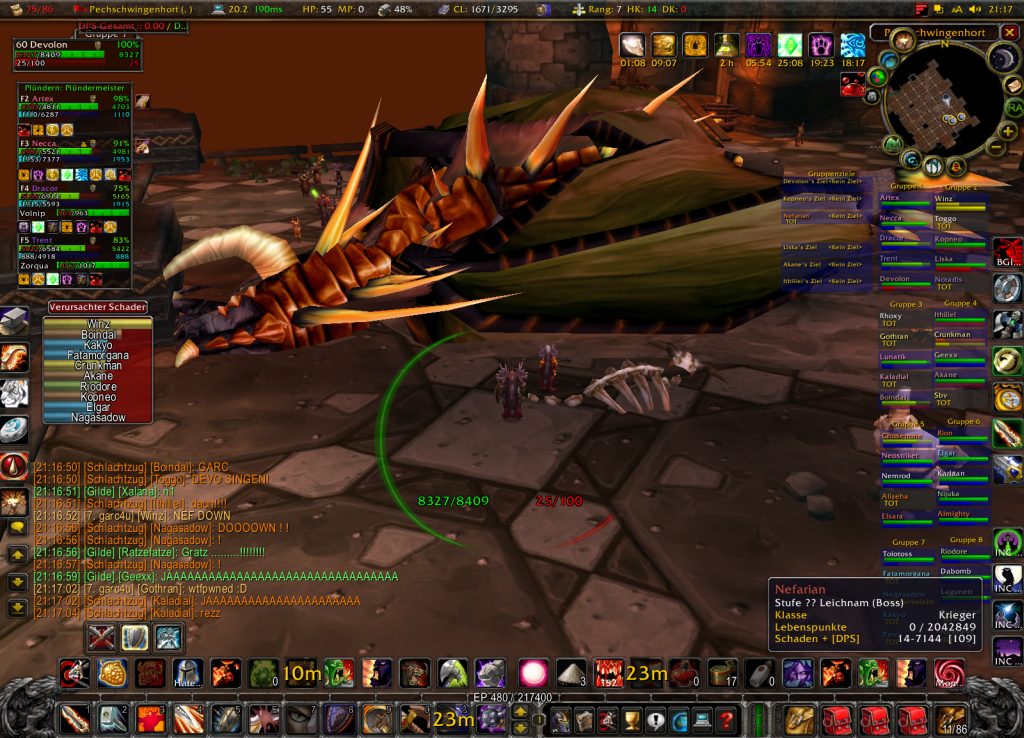 Es ist soweit, GARC hat den Pechschwingenhorst vom Abschaum gereinigt! Heute Abend musste Nefarian sich uns geschlagen geben und er war bestimmt von uns beeindruckt. Klar, er hat uns ja nur ein paar mal gesehen und ist jetzt schon tot. Mit nur 8 IDs haben wir BWL gecleared, eine reife Leistung, die seinesgleichen sucht! Die Geschwindigekeit mit der wir die Herausforderung BWL gemeistert haben, bringt uns wohl selbst zum stutzen.