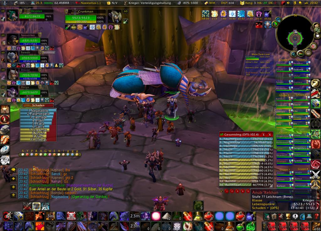 Nach dem Kill von C'thun, haben wir uns heute einmal wieder Naxx gewidmet. Da der Instruktor bereits besiegt wurde, ging es heute zu Anub.