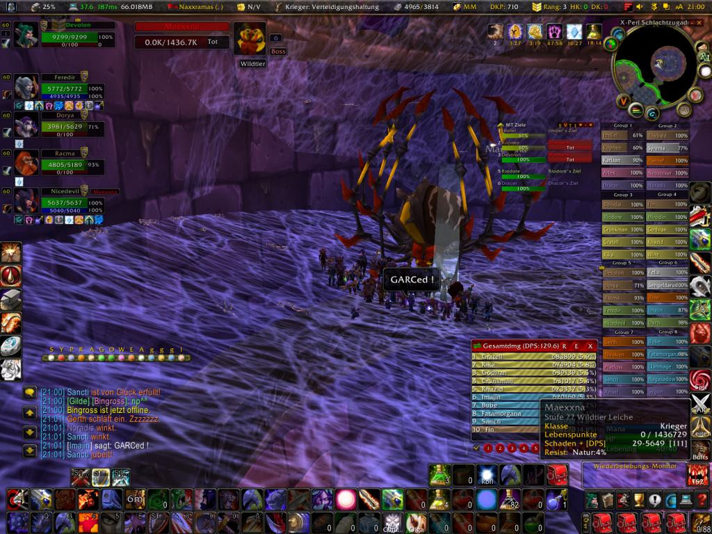 Gestern Abend stellten wir uns dem letzten Boss im Spinnenflügel. Maexxna kämpfte gerissen und feige, dennoch gelang es ihr nicht die GARC Kammerjäger zu überwinden, zumindest nicht lange