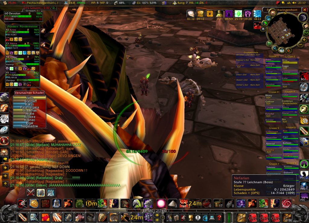 Es ist soweit, GARC hat den Pechschwingenhorst vom Abschaum gereinigt! Heute Abend musste Nefarian sich uns geschlagen geben und er war bestimmt von uns beeindruckt. Klar, er hat uns ja nur ein paar mal gesehen und ist jetzt schon tot. Mit nur 8 IDs haben wir BWL gecleared, eine reife Leistung, die seinesgleichen sucht! Die Geschwindigekeit mit der wir die Herausforderung BWL gemeistert haben, bringt uns wohl selbst zum stutzen.